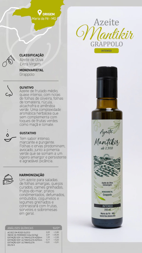 Esses prêmios destacam a excelência do azeite Mantikir, produzido na Serra da Mantiqueira, em um dos olivais mais altos do mundo, e os colocam em um patamar de reconhecimento internacional. O terroir da região contribui para a complexidade e o perfil sensorial único deste azeite.